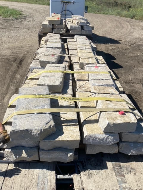 Quarry blocks consist of 3 colors – “24” inch McCoy Brown, “14” McCoy Brown, & “14” Light/Dark Gray. Quarry blocks weigh between 4 and 10 tons each.